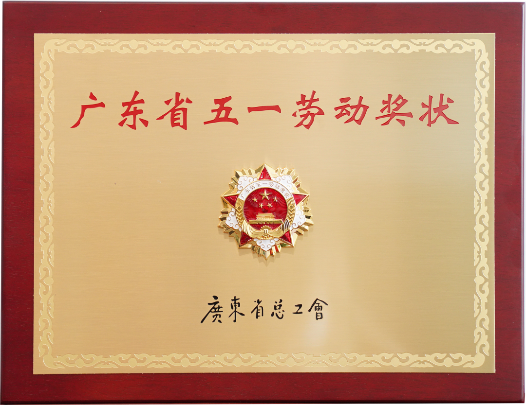 ▲ 荣获广东省总工会“广东省五一劳动奖状”表彰